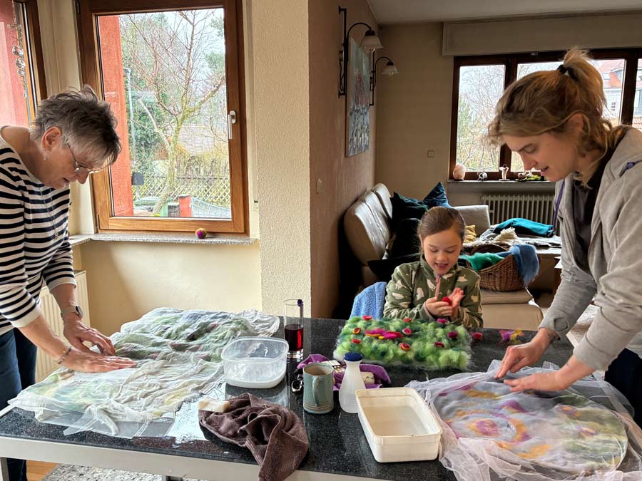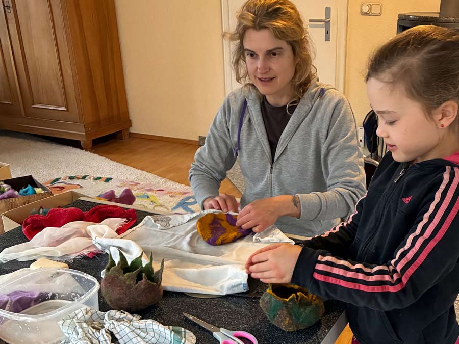 Filzen in der Schule: Um Kinder wieder an ein echtes Handwerk heran zu führen, biete ich auch Kurse in Schulen an.