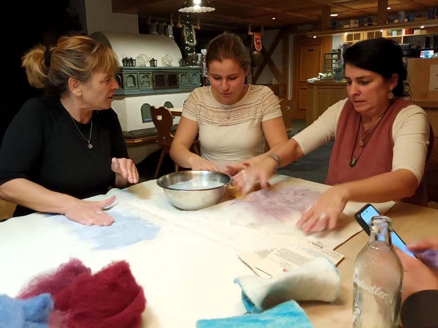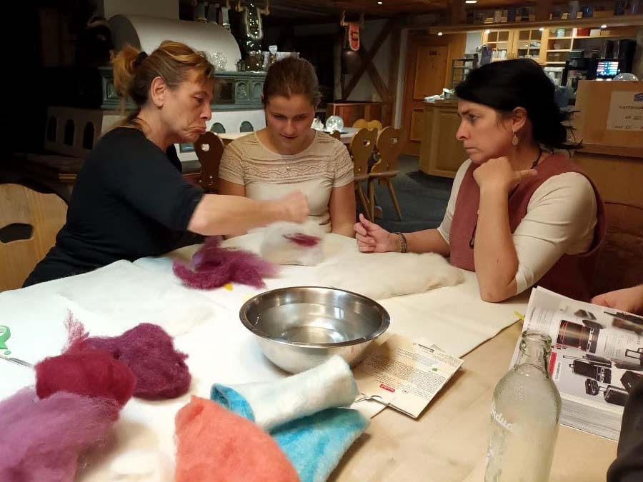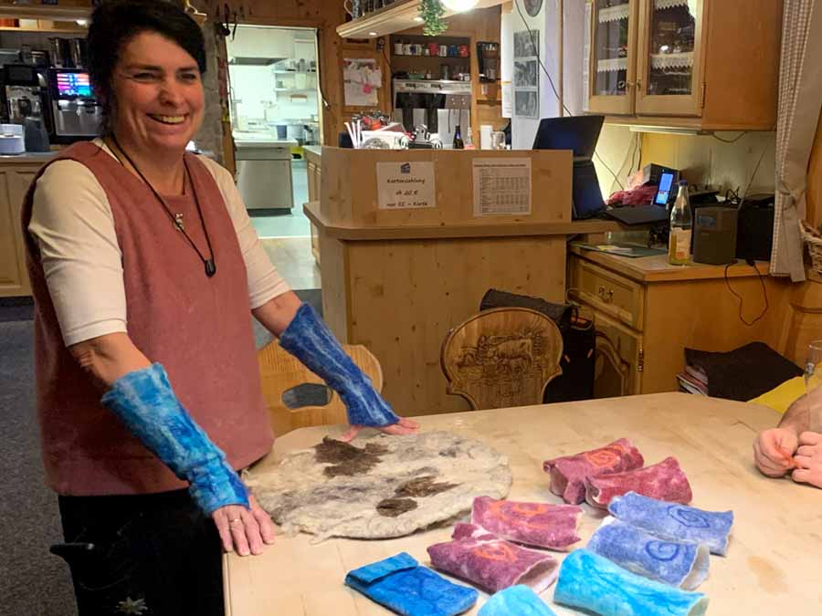 Ab und zu biete ich seit 2025 Filzkurse auf der Allgäuer Alm Hochbühl mit Freude durch .