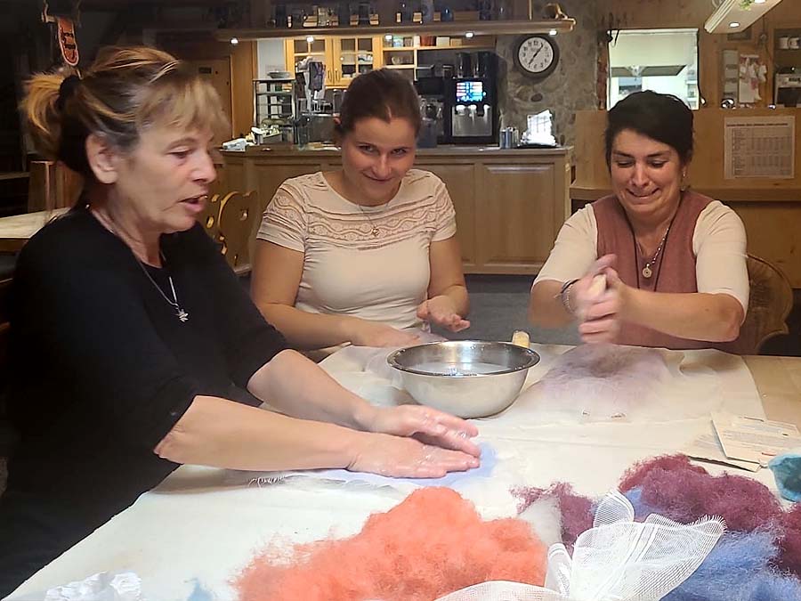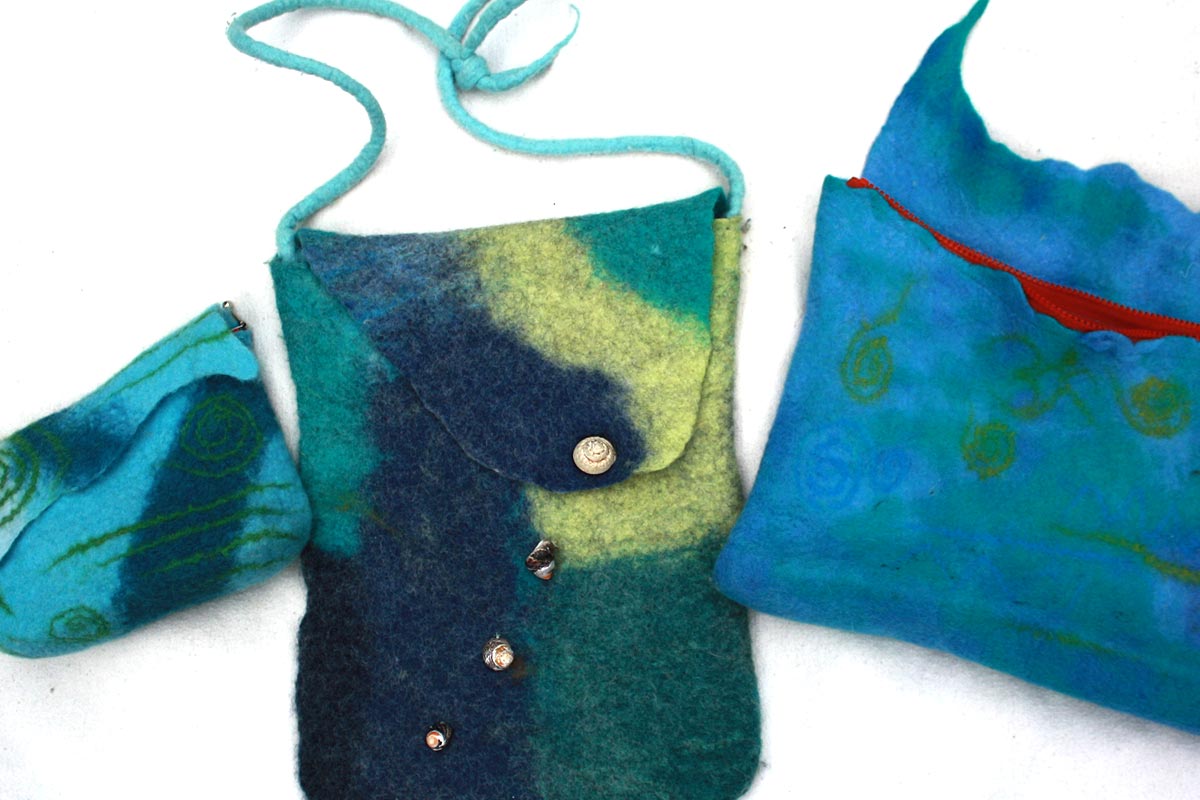 Filzen in Bensheim, Weinheim, Darmstadt und Umgebung: Einen ganzen Samstag können Sie mit farbenfroher Schafswolle fantasievoll und kreativ unter Anleitung eigene Kunstwerke filzen: Taschen, Hüte, Hausschuhe, Wandbilder, Puppen und vieles mehr. Maximal nehmen 6 Personen in einem Kurs teil; wir sind also eine kleine Gruppe.